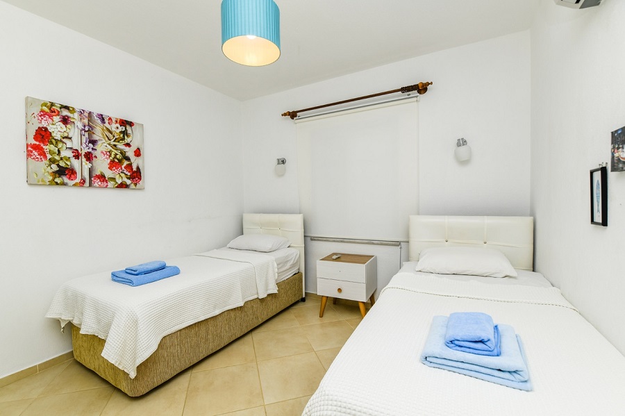3. Yatak Odası: 2 adet tek kişilik yatak, elbise dolabı, makyaj masası ve klima,